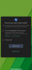 After you have entered the phone number we have on file for you, you will have the following options to receive a secure code: